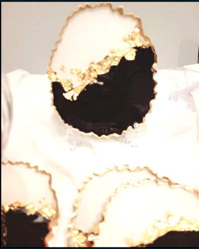 All coasters and trays are handmade to order including the mould so each product will be unique and slightly different from the ones in the photo, although the colours used will be the same.